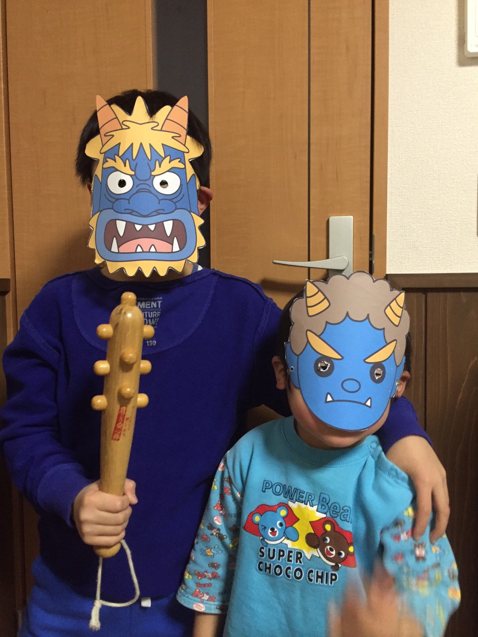 そして、夜はうちのオニ退治です!(手作りお面)